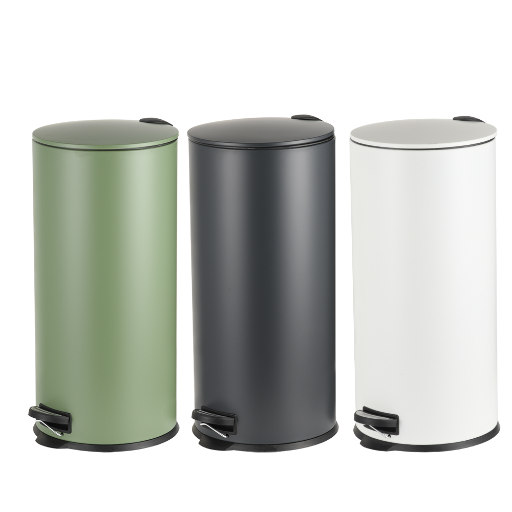 - 30 liters 8 gal stainless steel kitchen foot pedal dustbin with soft slow close function.