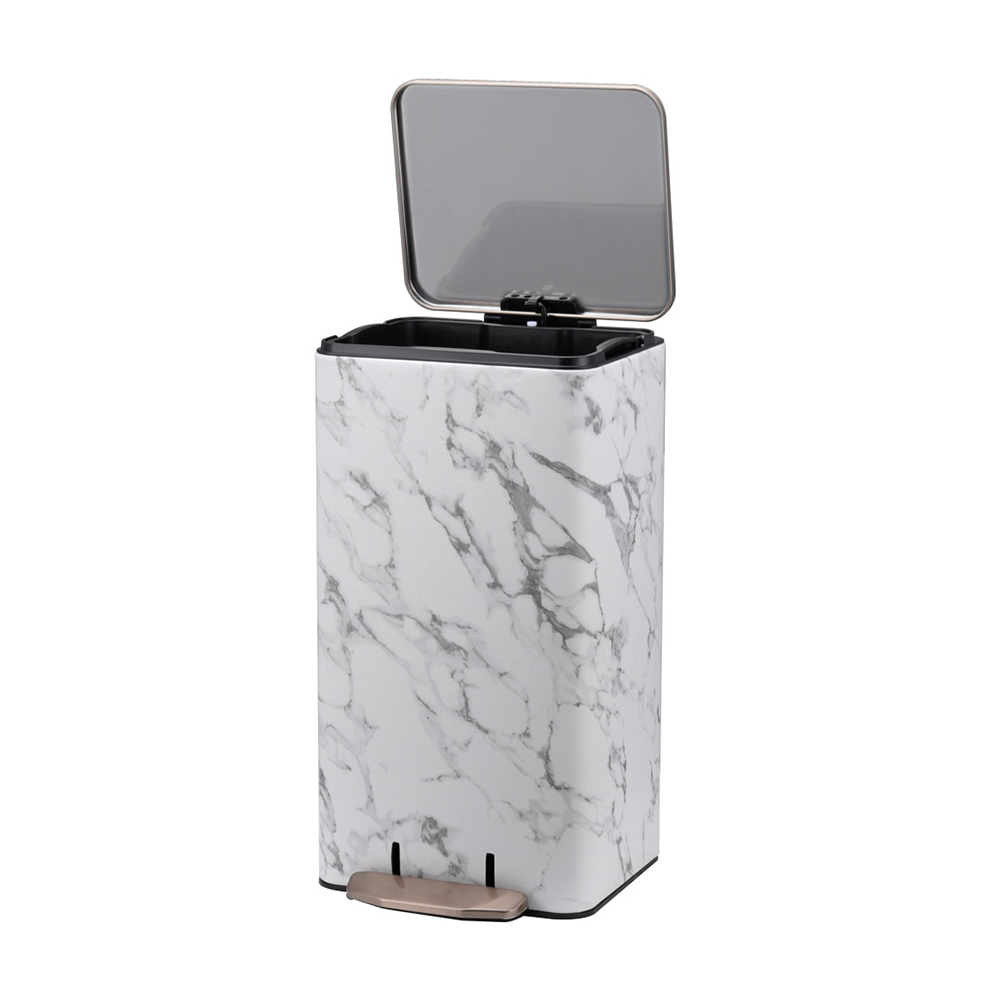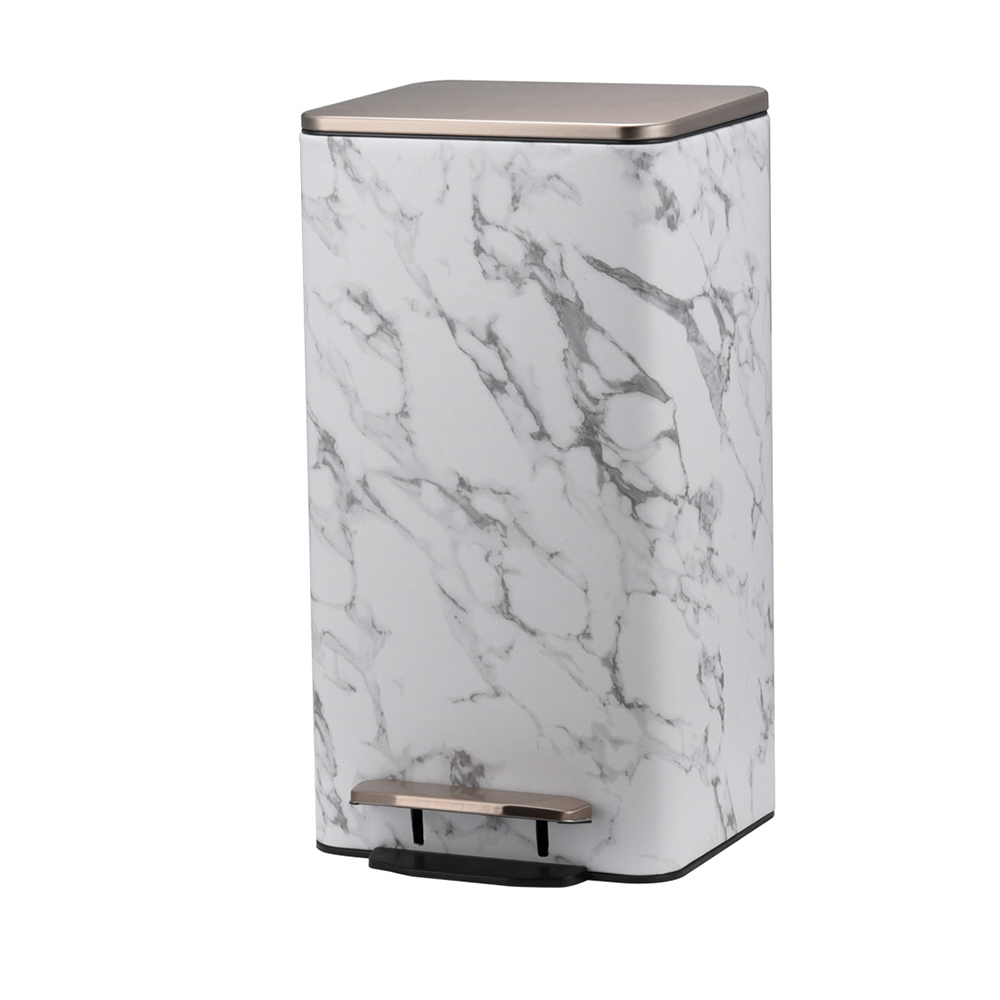 - Stainless steel commercial foot pedal marble trash can is perfect for every office, home, bathroom, kitchen and apartment.