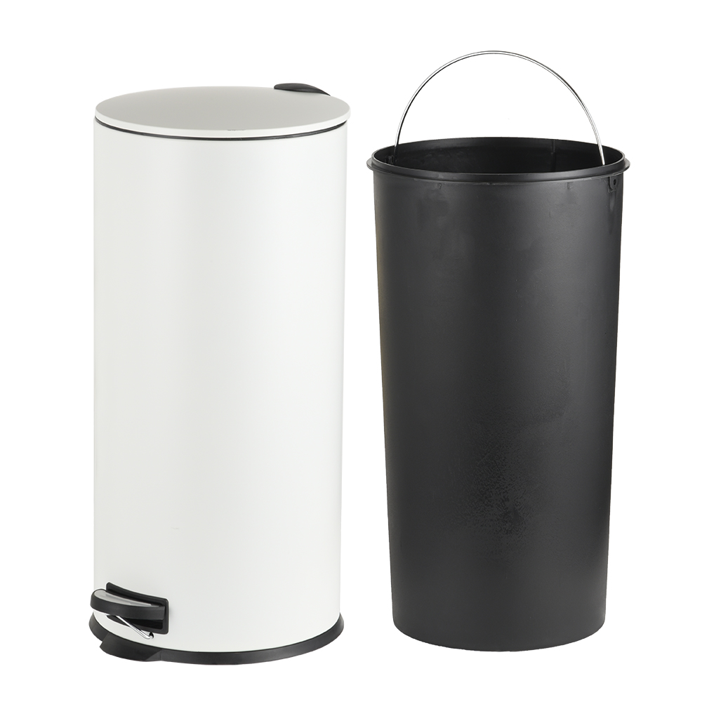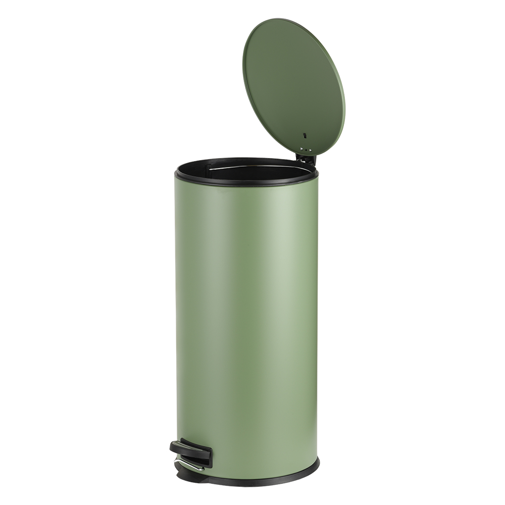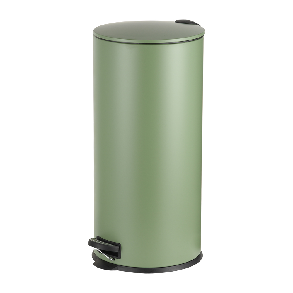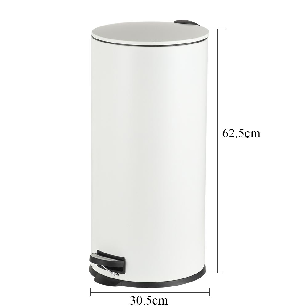 - 30 liters 8 gal stainless steel kitchen foot pedal dustbin with soft slow close function.