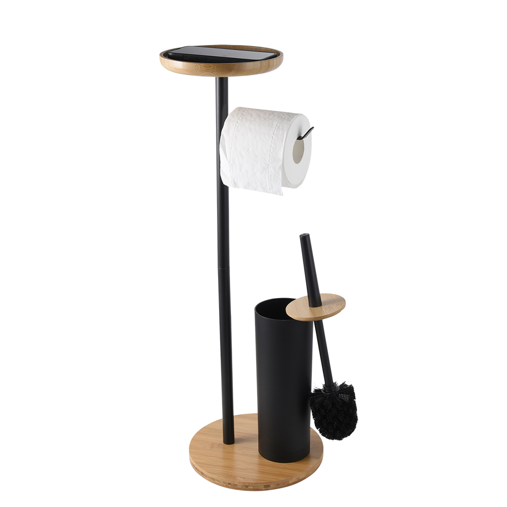 - Black bamboo wooden toilet roll holder stand factory manufacturer is a space-saving design.