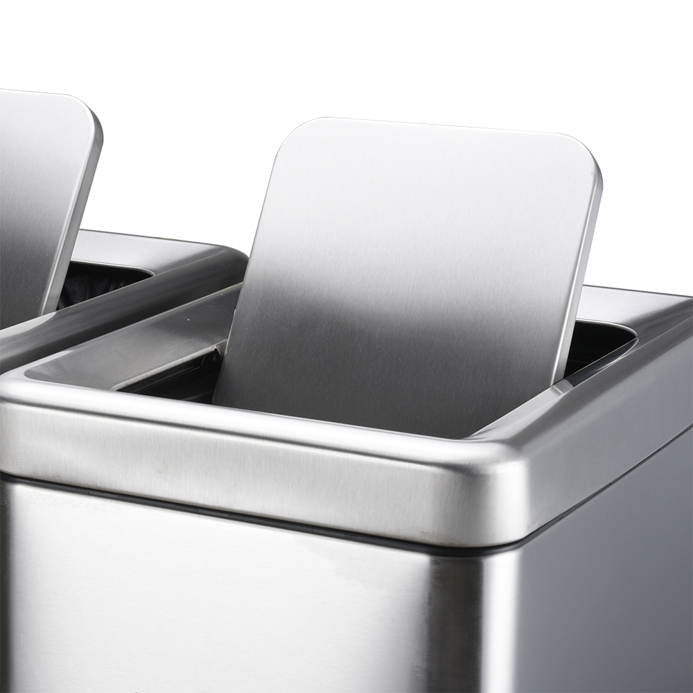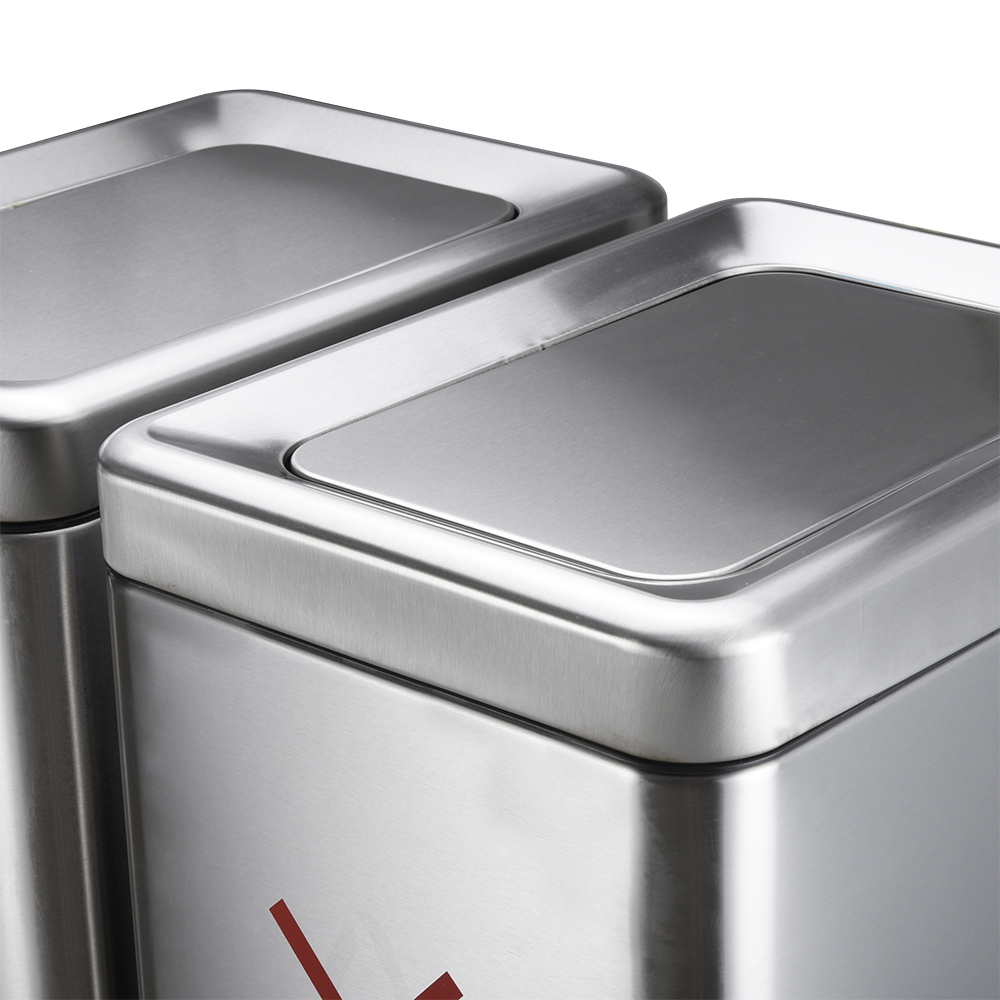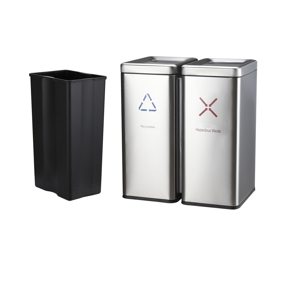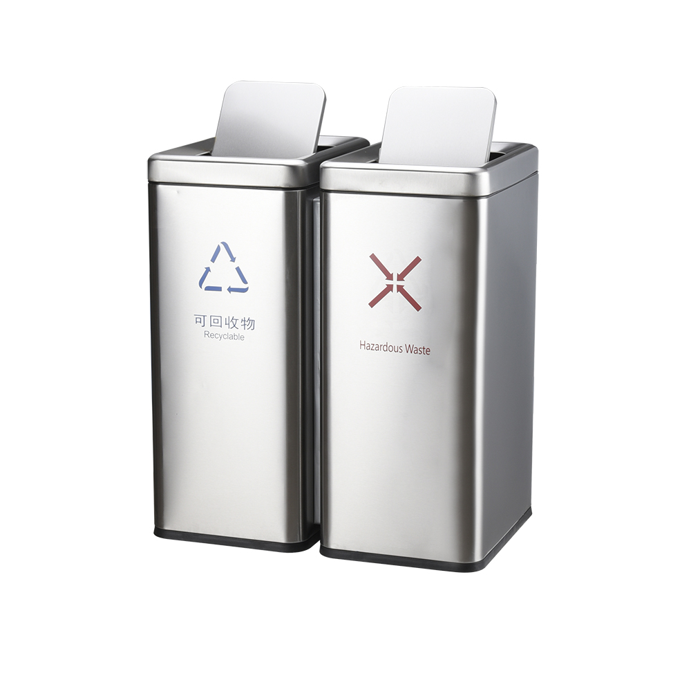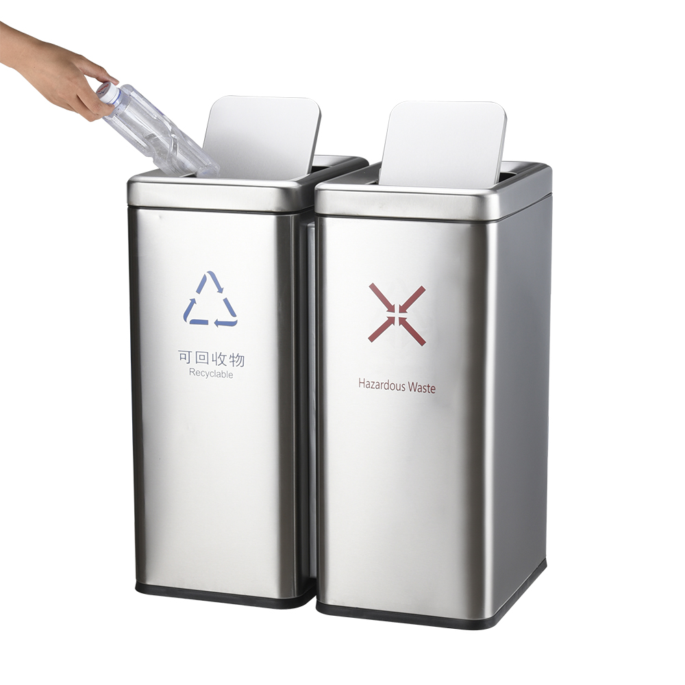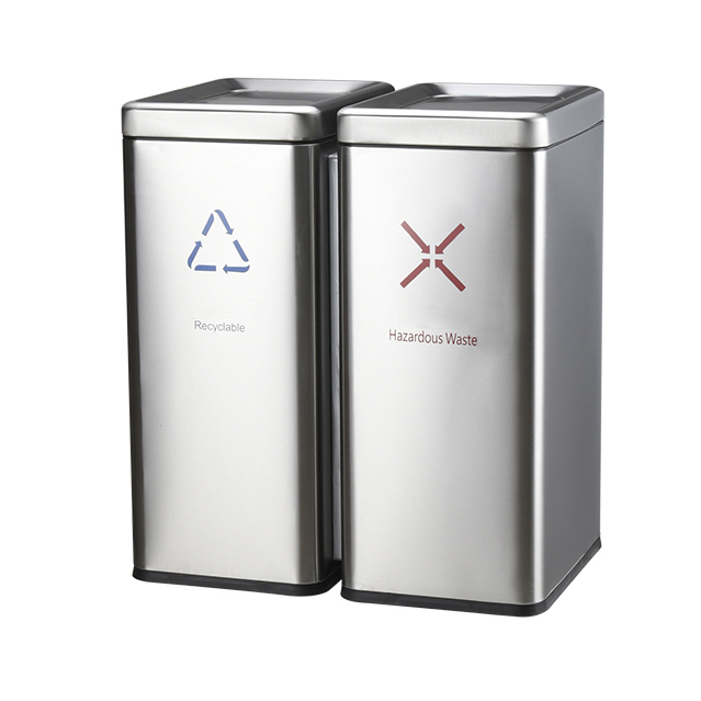 • Commercial public stainless steel dual double compartment trash can with liner is perfect for public area, such as shopping mall, hotel, library, school and so on.