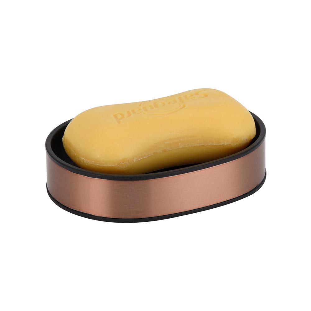 - Refillable soap dispenser with pump head for liquid soap, soap dish for soap pieces.