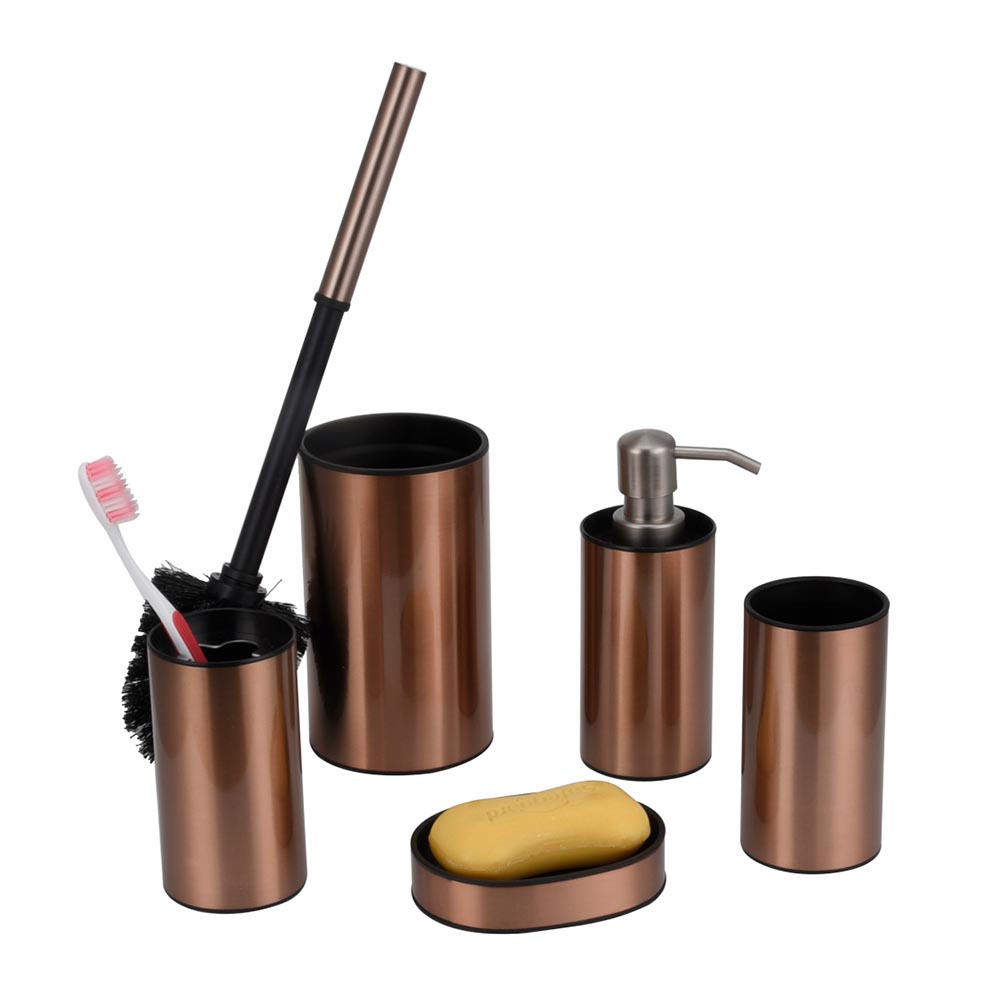 - Includes soap dispenser, soap dish, tumbler, toothbrush holder, toilet brush, 5L bathroom open-top bin