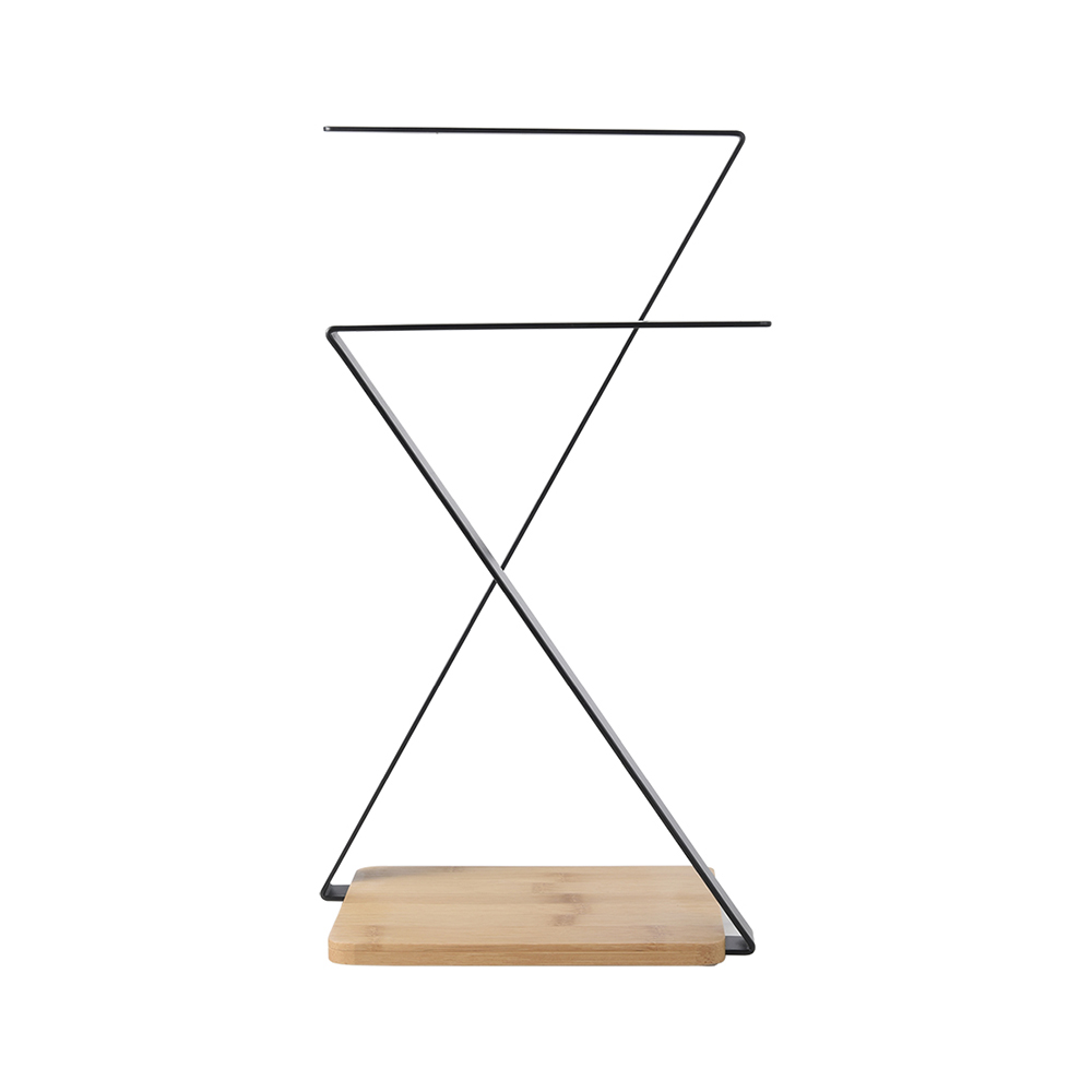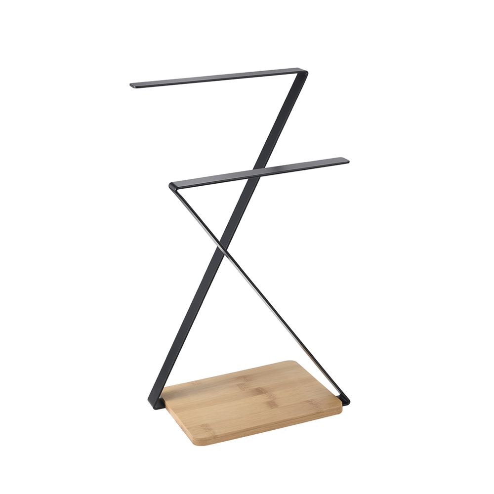 - Countertop dual bar bath hand towel holder stand rack standing. Bamboo non-slip base, eco-friendly material. It is just the right height for storing fresh, clean towels as your step out of the shower or tub.
