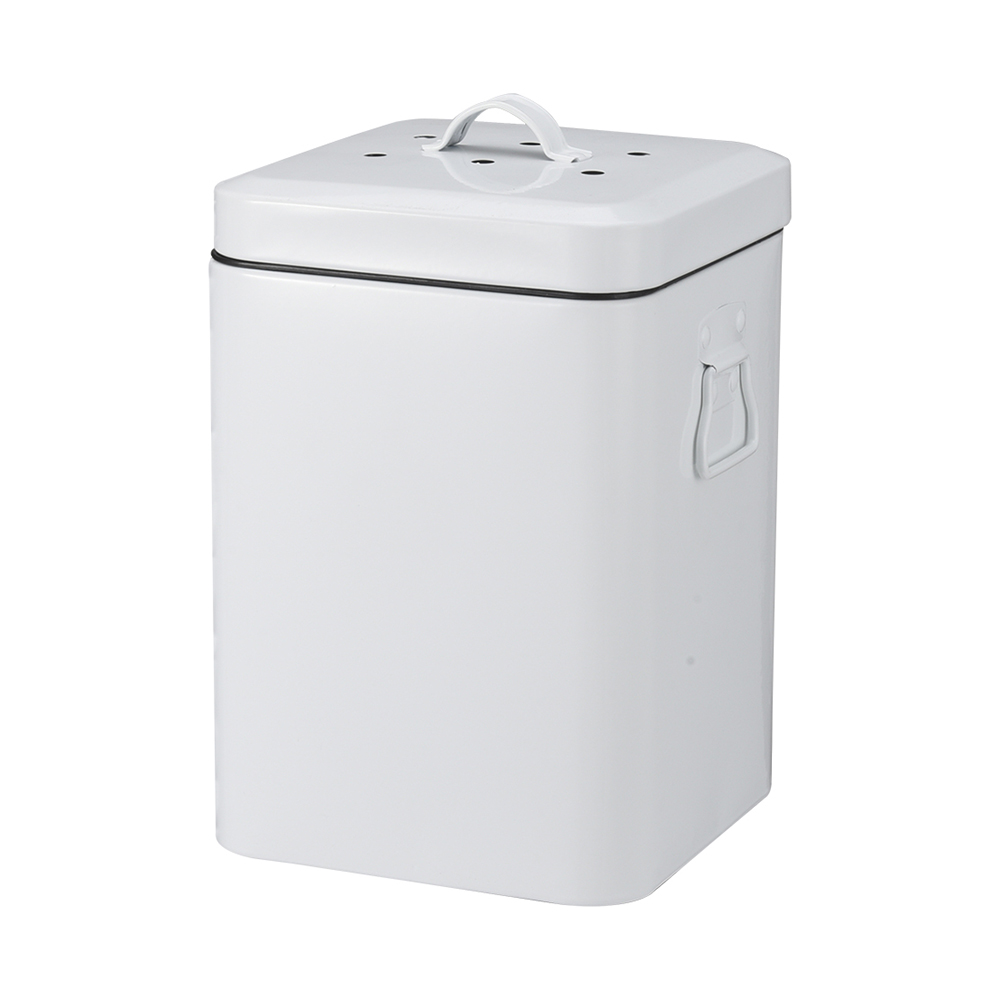 - Our countertop square compost bin for kitchen indoor compost Bin for kitchen counter with charcoal filter and inner pail that enables you to easily carry your collected food scraps to the compost area in your backyard. Wide-mouthed opening makes it easy to throw in scraps from your kitchen. With two size for difference user , this compost pail can hold 2-3 days worth of your organic kitchen waste, saving you multiple trips from your kitchen to your outdoor compost area.