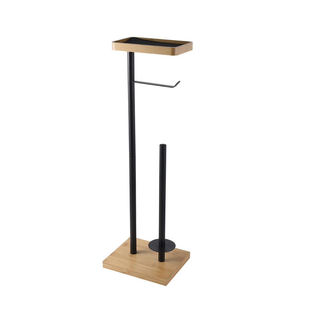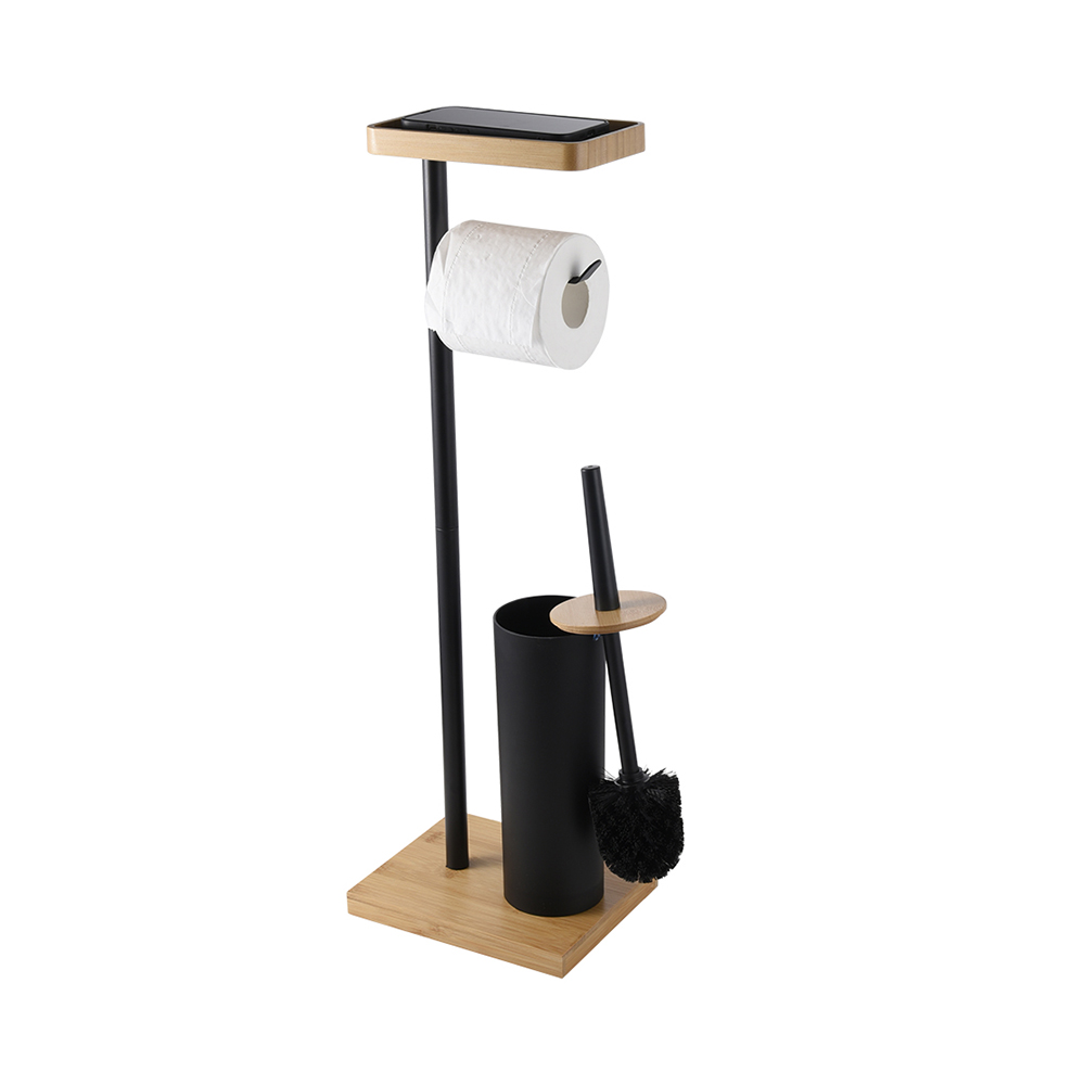 - Eco-friendly freestanding toilet brush holder with phone shelf holder is a space-saving design.