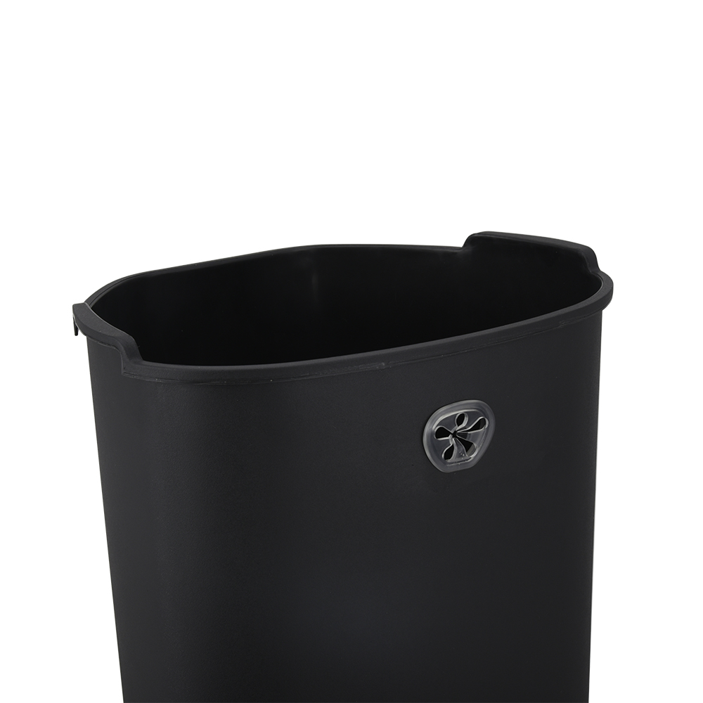 - Hand free operation. Heavy-duty plastic interior bucket can be easily removed for convenient waste disposal.