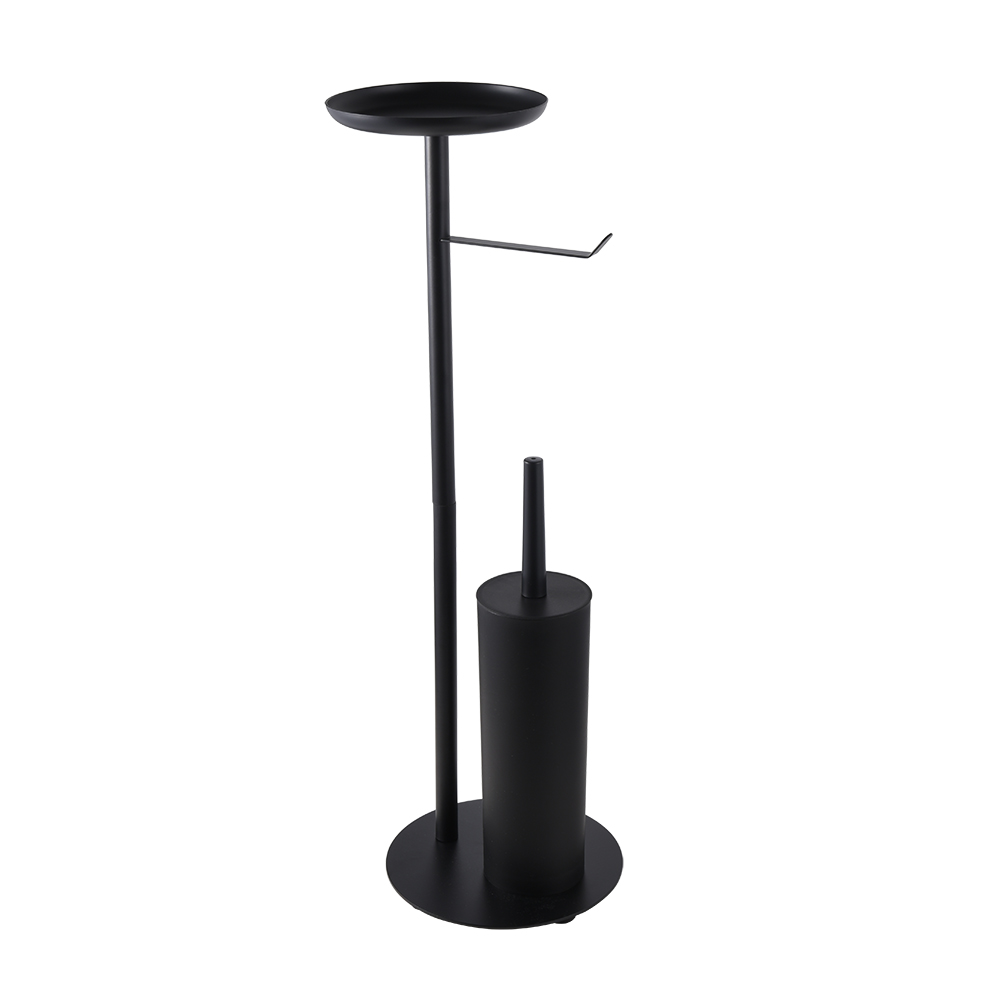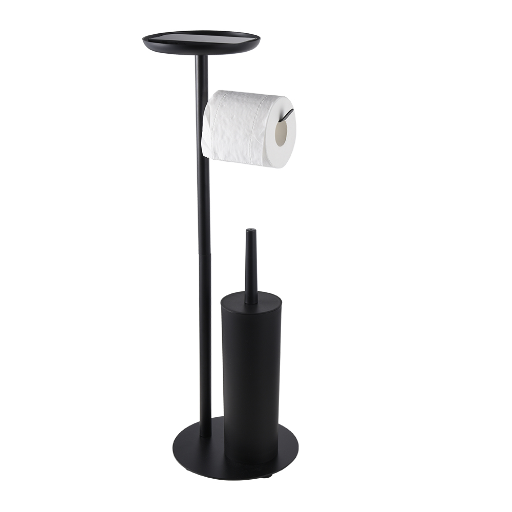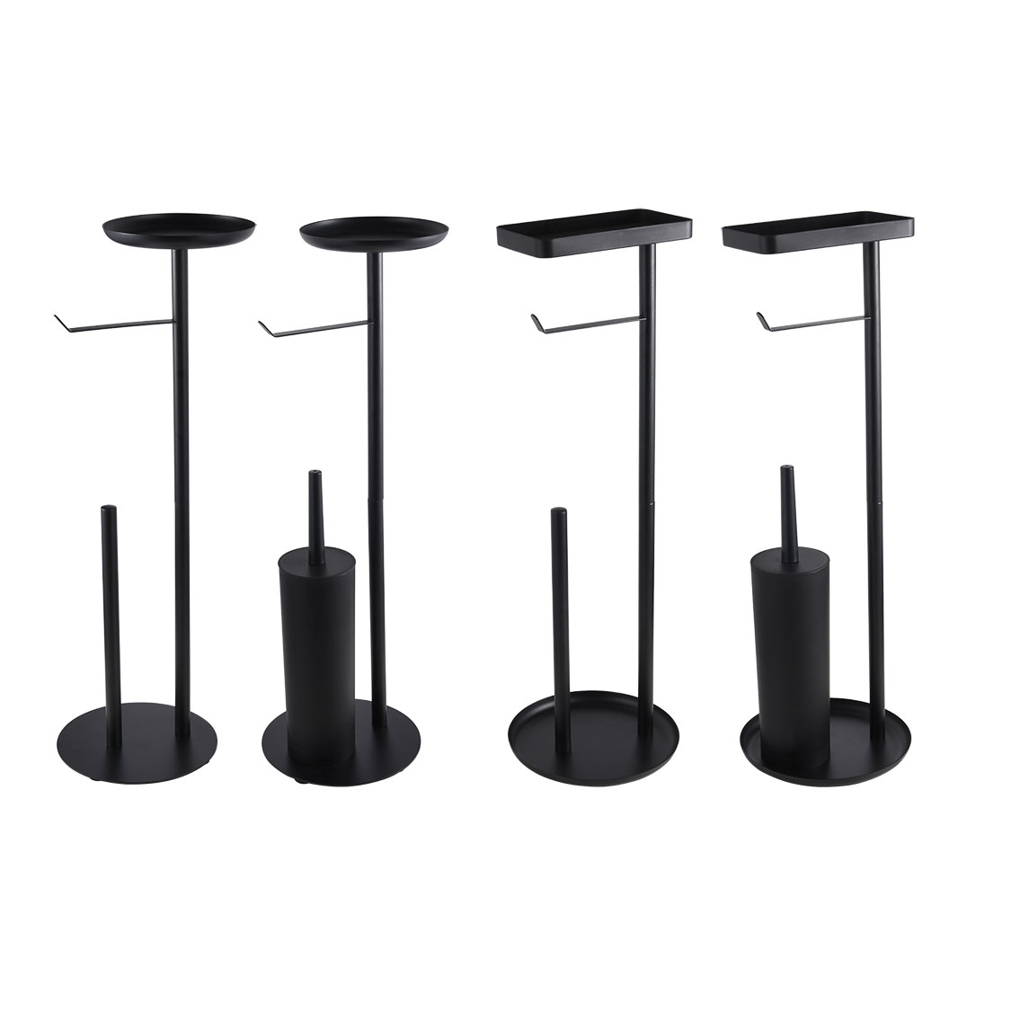 - Free standing black round tissue roll holder with shelf manufacturer is a space-saving design.