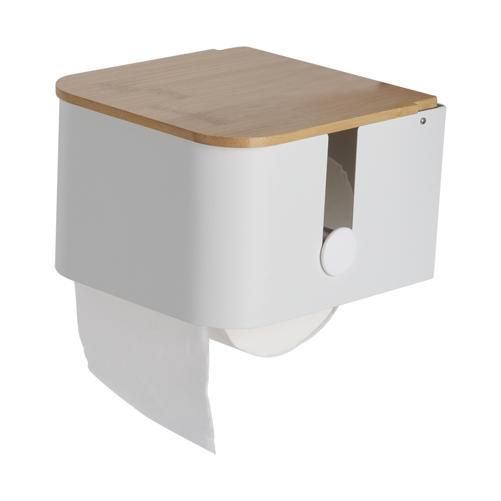 - Home apartment bathroom Wall mounted bamboo toilet paper roll holder manufacturer is in a convenient design, tissue roll dispenses easily.
