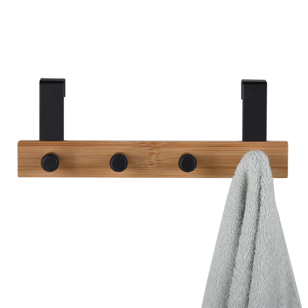 - Kitchen bedroom metal bamboo cabinet door towel hanging hook. It is of bamboo, eco-friendly material.