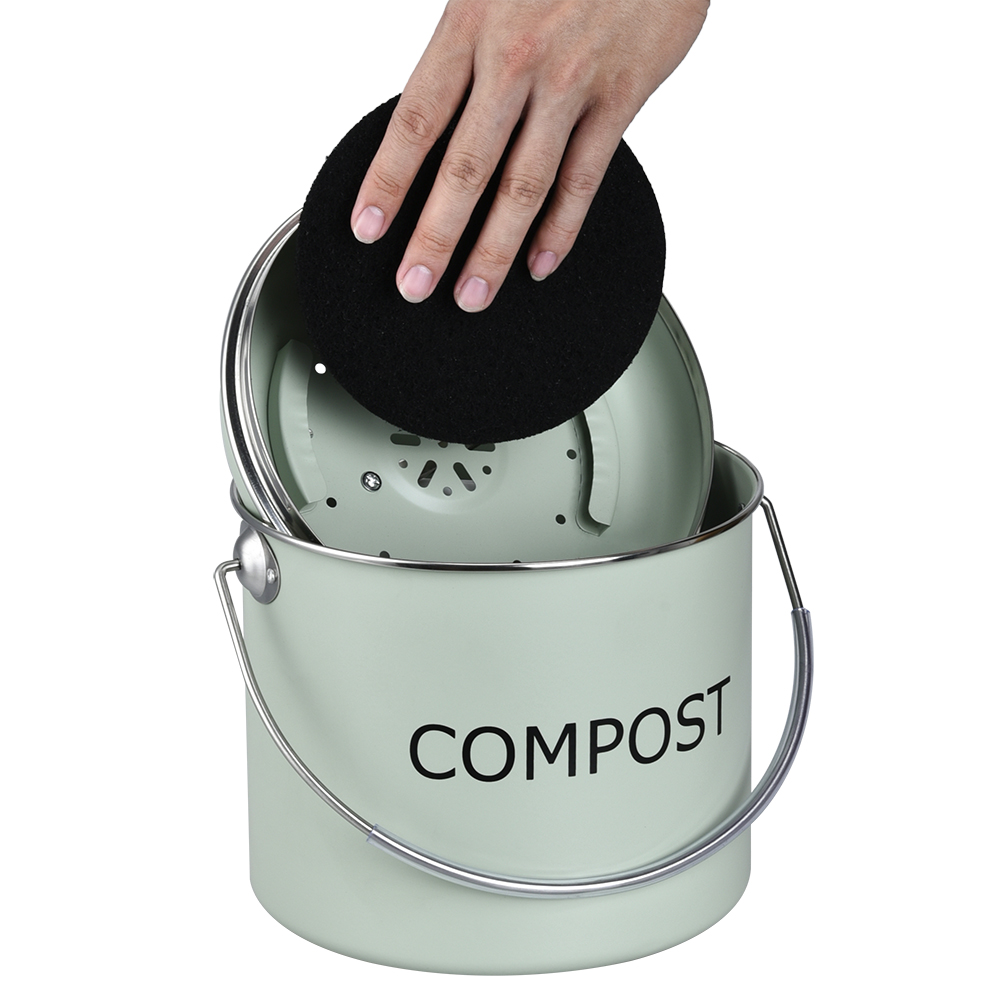 - Use the sturdy handle to empty the indoor compost into your outside food waste bin without any hassle; Simply wash the kitchen compost container with warm soapy water & gently wipe the lid with a damp cloth after use .