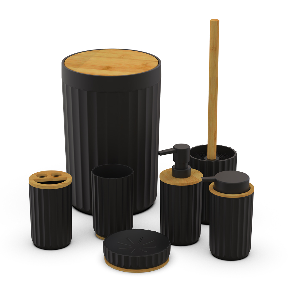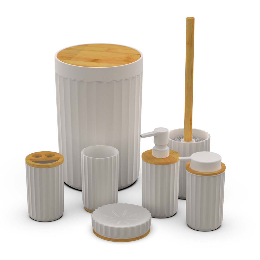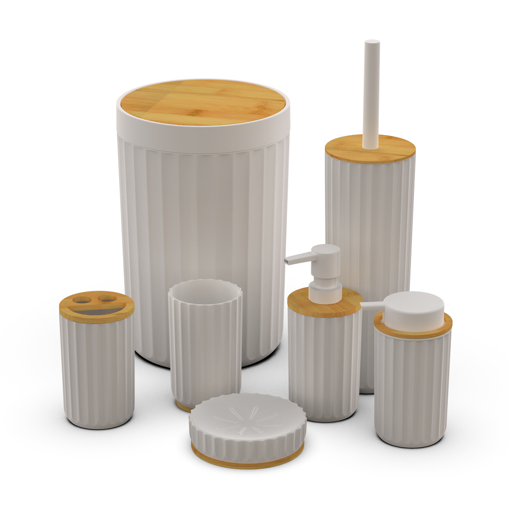 - Luxury vanity plastic bamboo embossed bathroom accessories set.