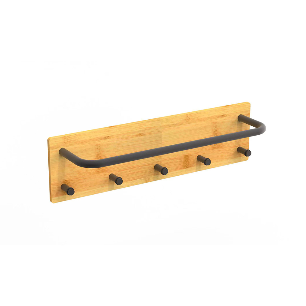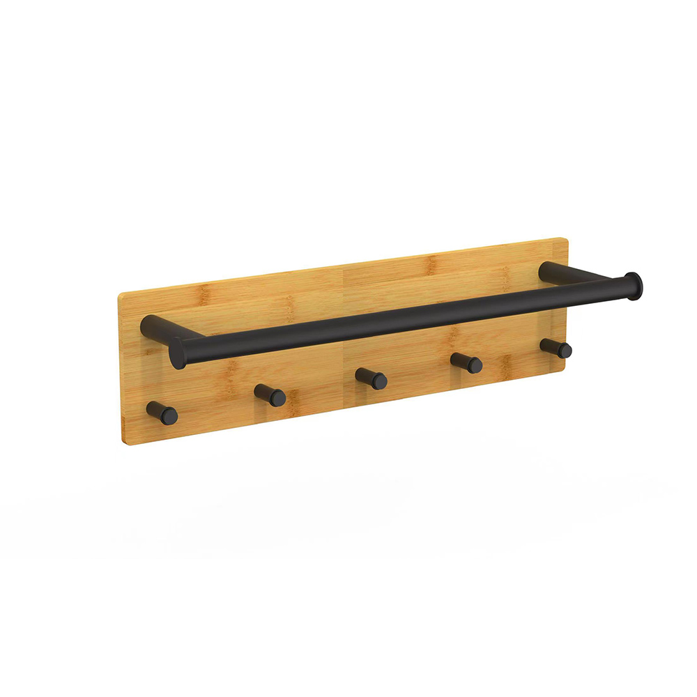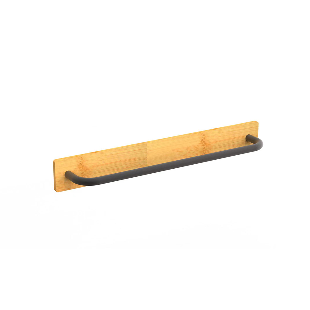 - Natural bamboo black steel self-adhesive wall bathroom towel rack, ECO-friendly material.