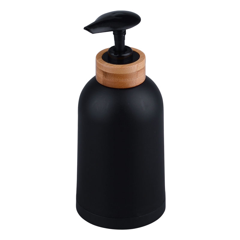 - Refillable soap dispenser with pump head for liquid soap, soap dish for soap pieces.