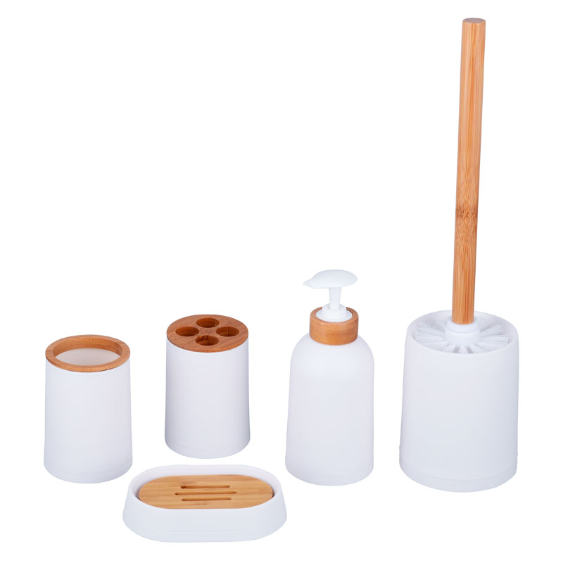- Includes soap dispenser, soap dish, tumbler, toothbrush holder, toilet brush, 5L bathroom open-top bin