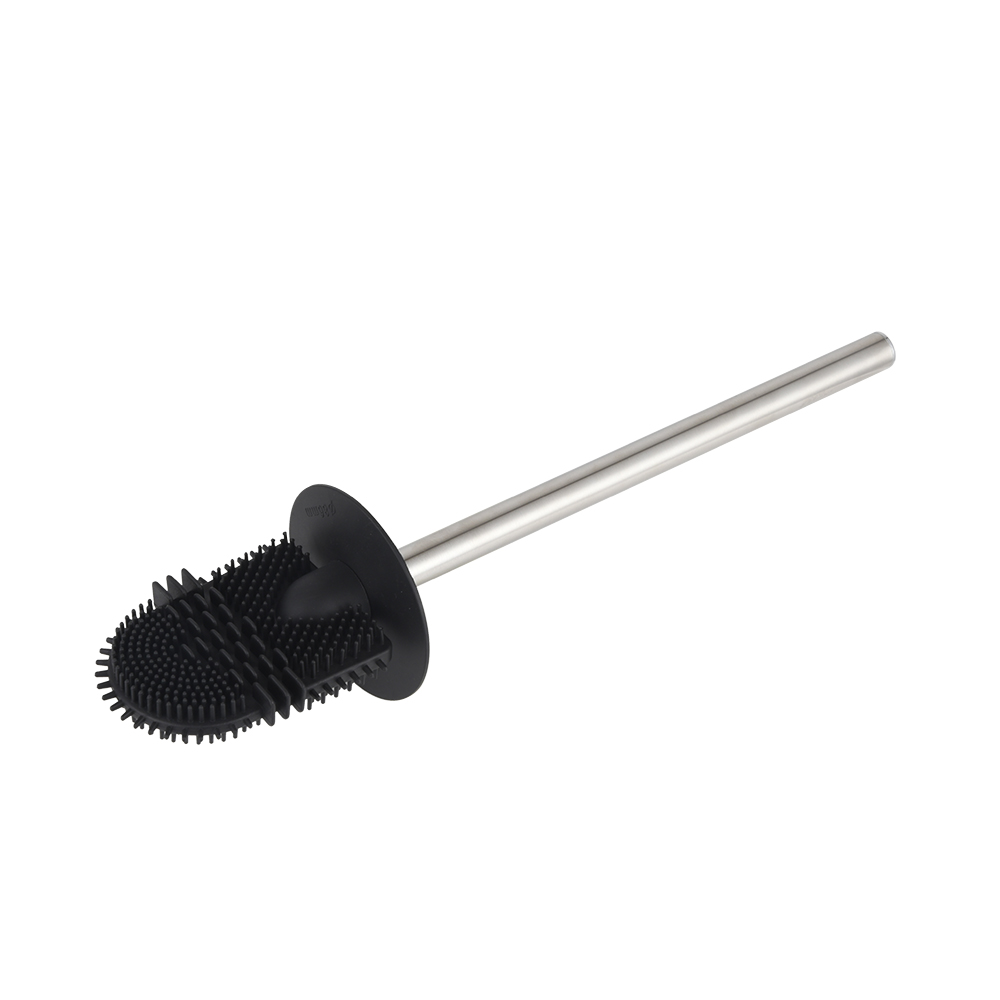 - Self adhesive wall mounted silicone TPR toilet brush holder black satin.