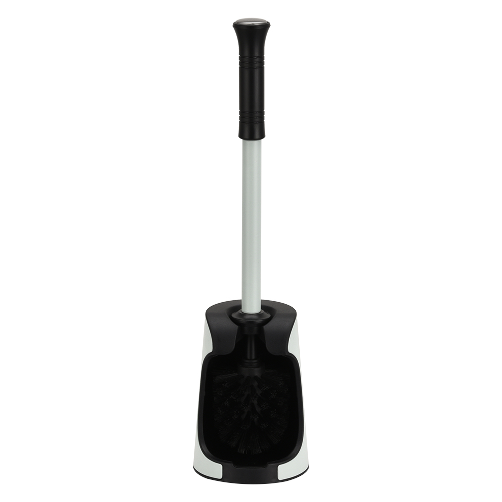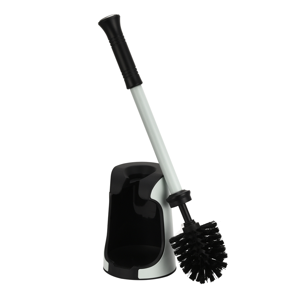 - Semi open stainless steel toilet bowl brush and holder black white grey, designed with a semi-open body.