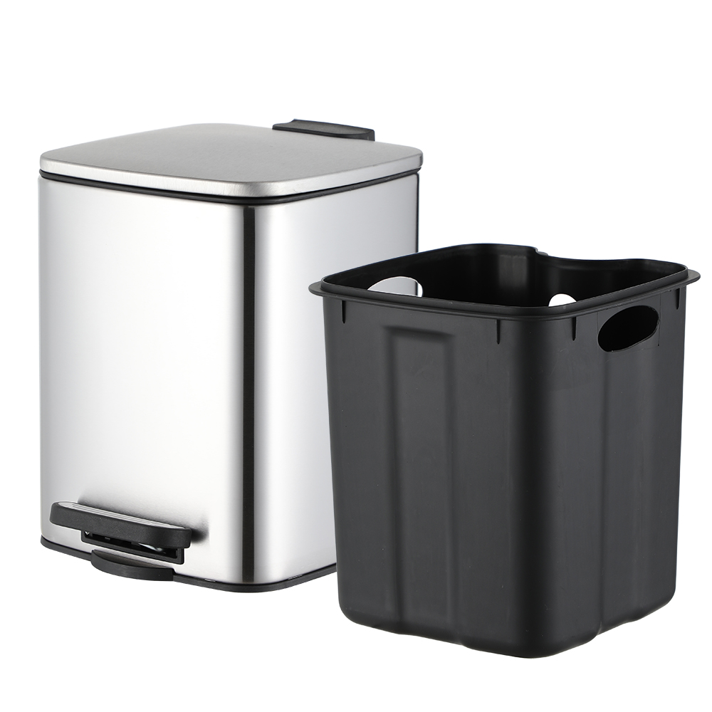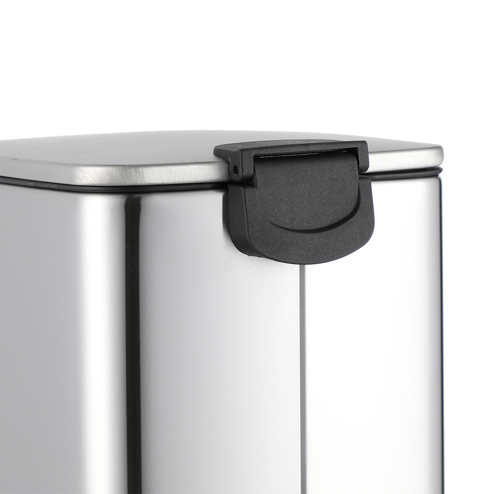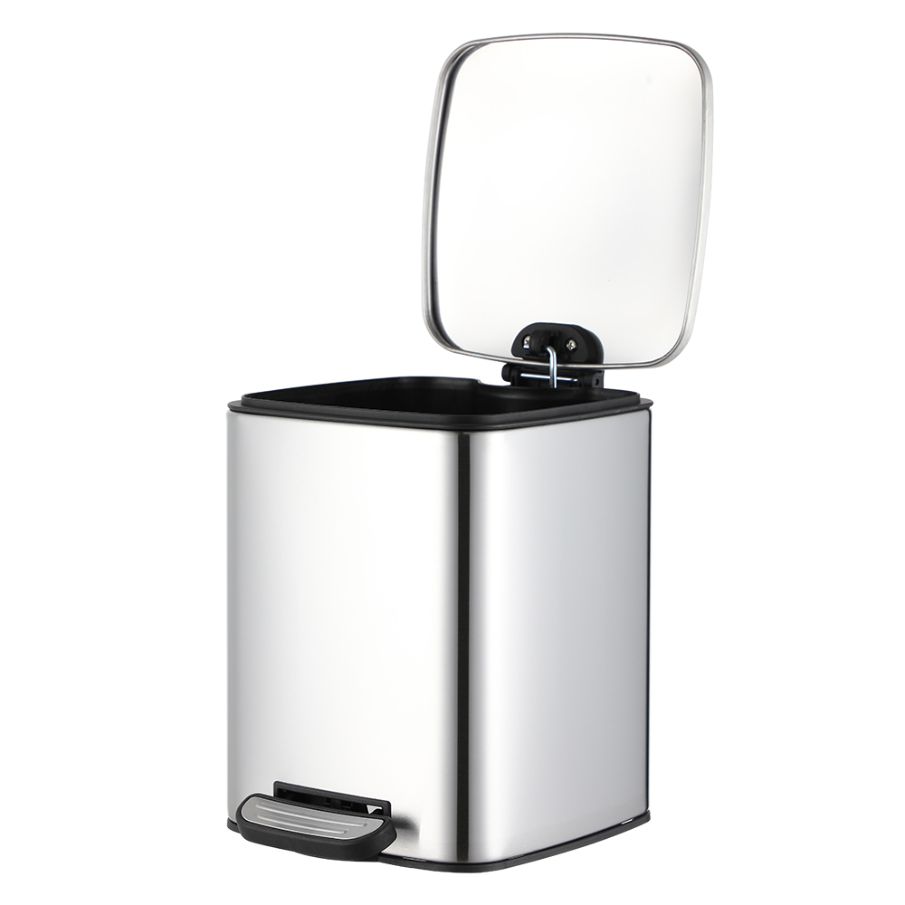 - Soft close 5L slim lid square trash can rubbish garbage bin factory. It is made of a stainless steel panel, sturdy.