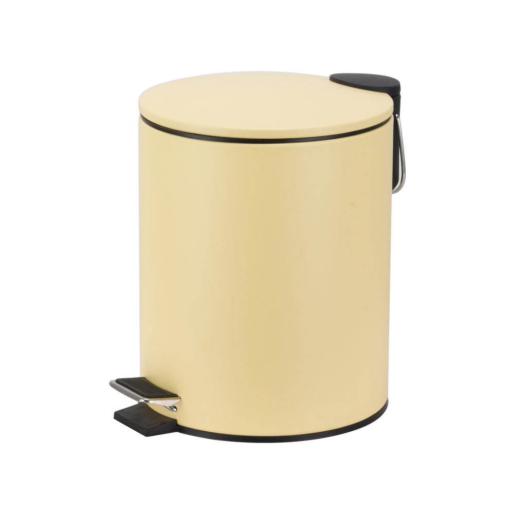 - Soft close round slim lid trash can garbage rubbish bin manufacturer. It is made of a stainless steel panel, sturdy.