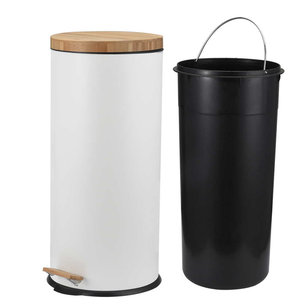 - Heavy-duty plastic interior bucket can be easily removed for convenient waste disposal. Sinoware pedal bin.