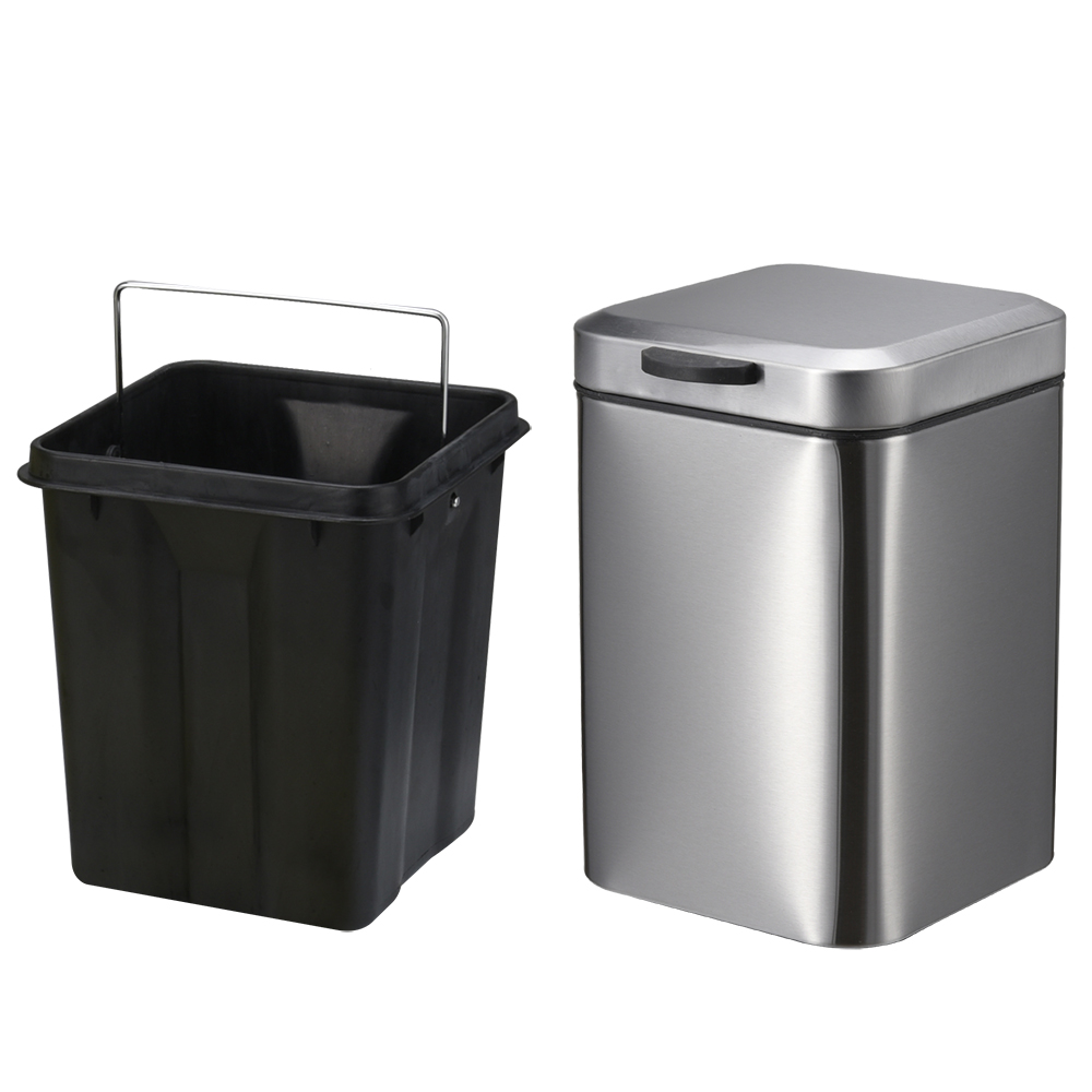 - Square hanging wall mounting stainless steel kitchen waste bin trash can dustbin with liner.