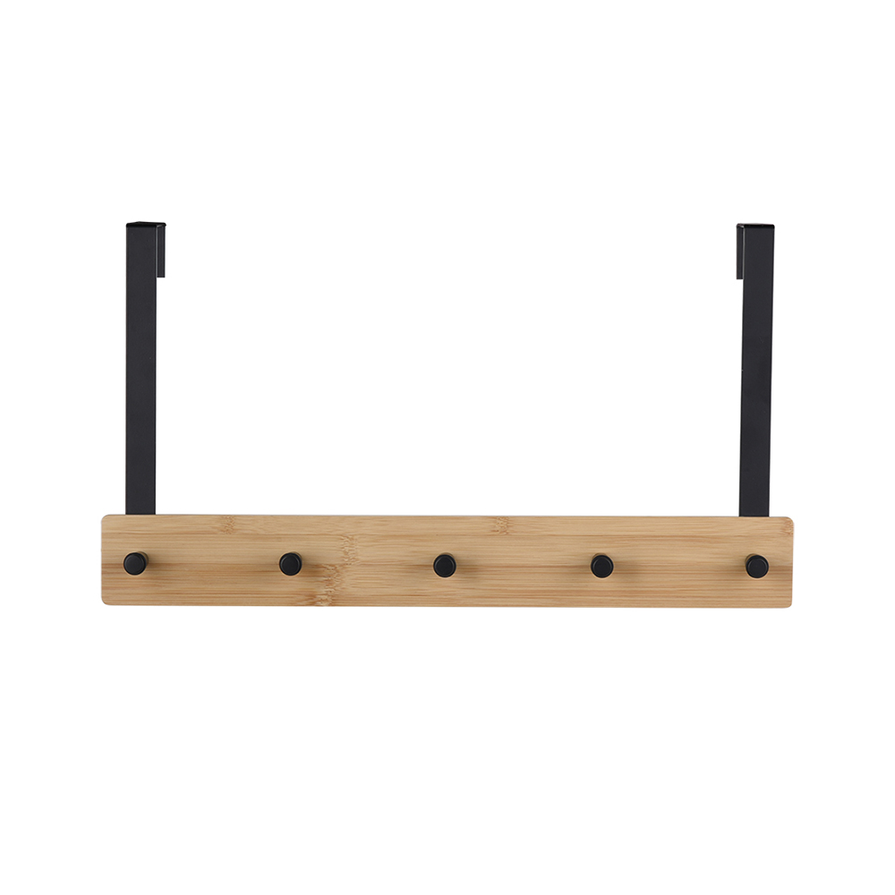Steel and natural bamboo over the door mounted towel rack 5 hooks black
