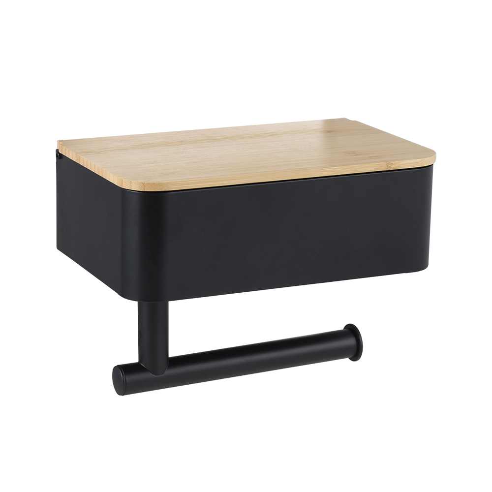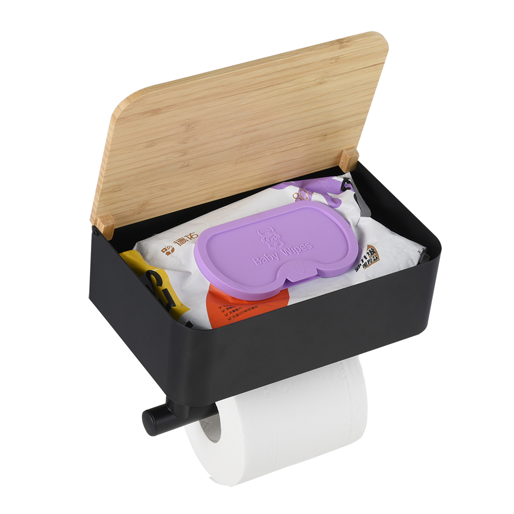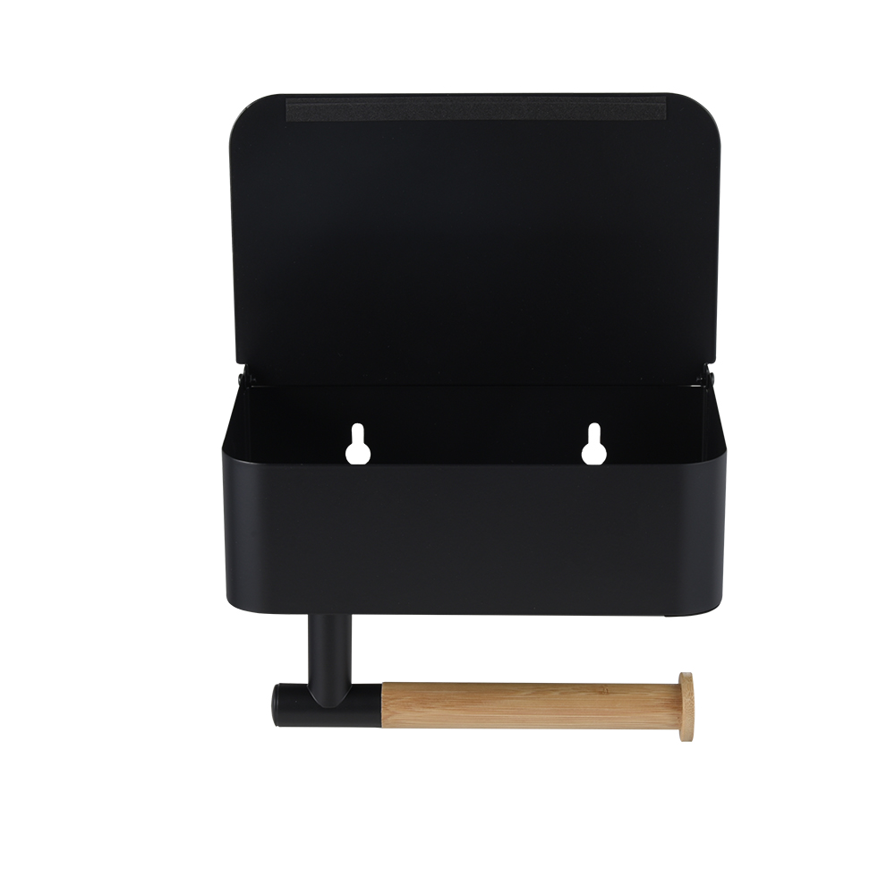 - Toilet bathroom self adhesive bamboo steel wet wipes box holder black is in a convenient design, paper dispenses easily.