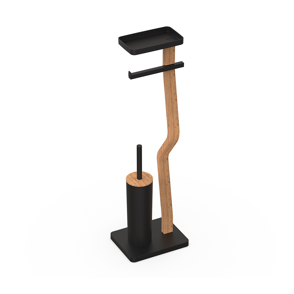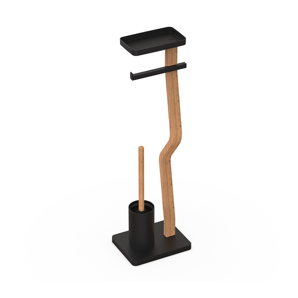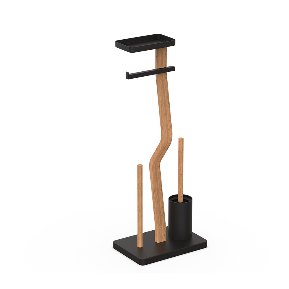 - Wood OAK bamboo dual 2 bar rail towel holder rack stand black. It is of OAK, eco-friendly material. It is just the right height for storing fresh, clean towels as your step out of the shower or tub.